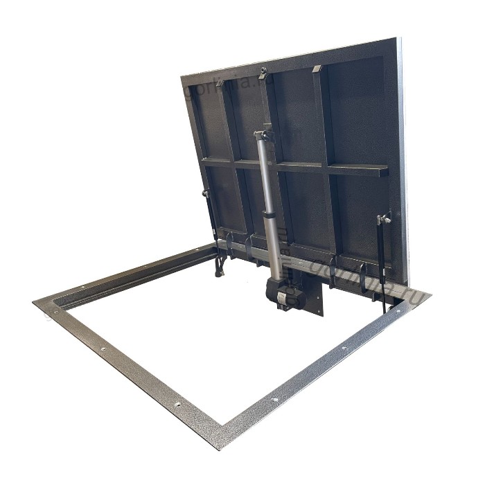К стандартной модели люка в погреб SТЕЛС прибавляется материальная часть: электропривод - актуатор, блок управления и кнопка открывания - закрывания. В комплектацию люка в подвал с электроподъемником не входят газовые амортизаторы и замок со съемной ручкой ключом.