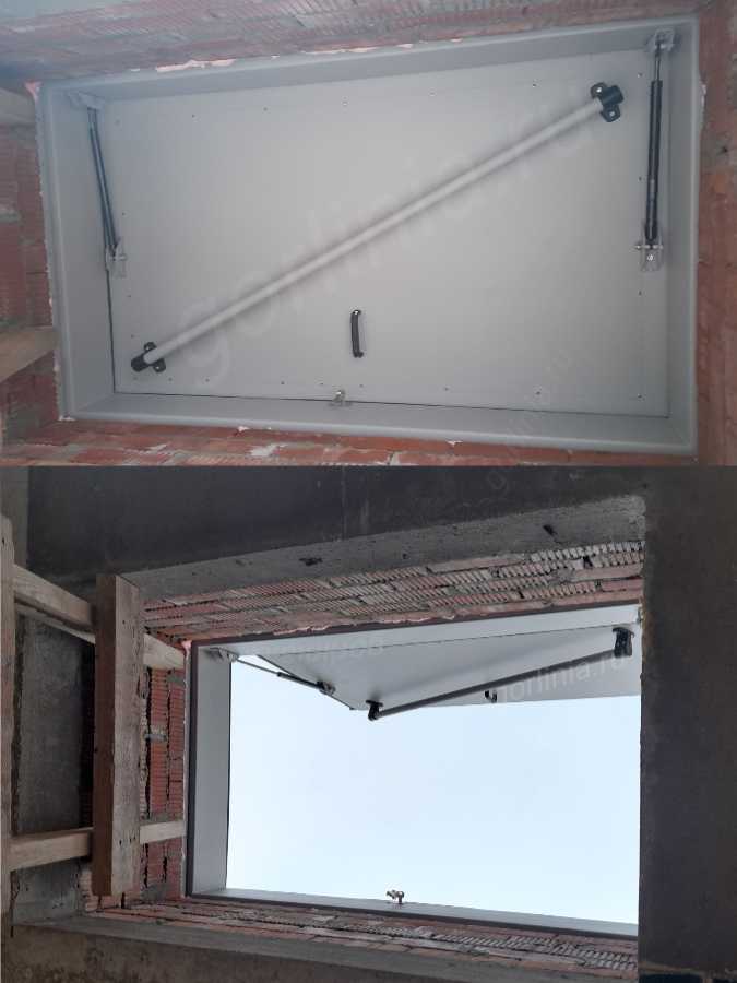 Рекомендуем заказать дополнительную лебедку для облегчения подъема дверцы с технического этажа после выпадения снега.