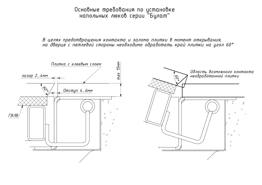 Облегченная рама из листового проката 3 мм с наличником, жесткий каркас полотна в обвязке трубой 30х20 заполнен гипсоволокнистым влагостойким листом над утеплителем под чистовую отделку плиткой.