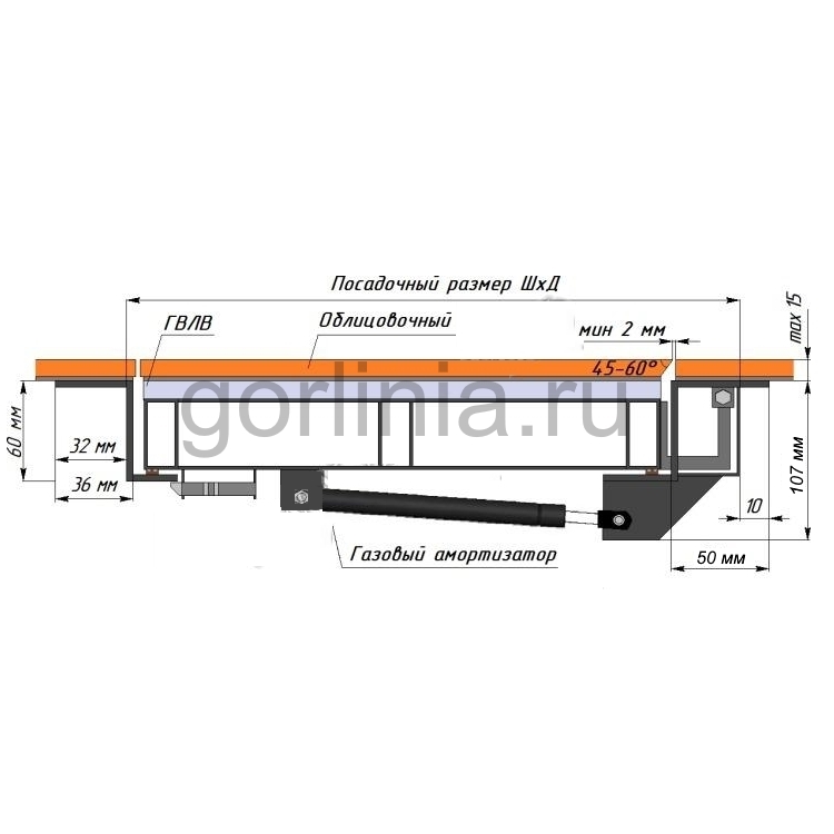 Облегченная модель без щелей в полу со уведенными за ось открывания петлями. Легкая ходовая часть и удобная установка. При формировании посадочного отверстия обратите внимание, что защитные кожухи шарниров выходят за посадочную отметку по плечевой стороне (см фото).