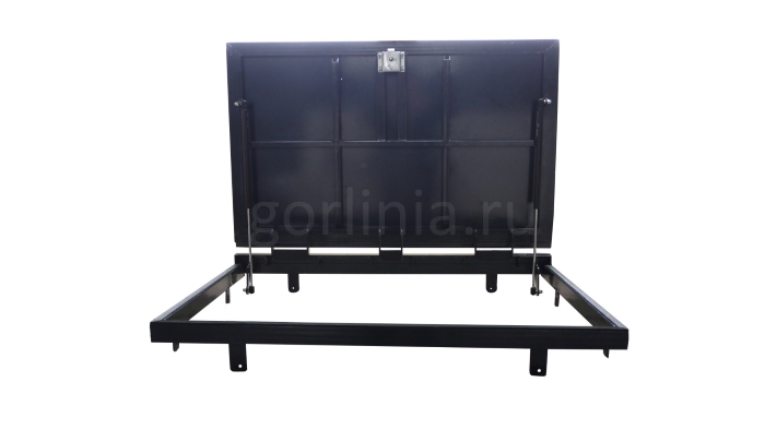 Рама без наличников выставляется в существующем отверстии 60*100 см с допусками, крепится в перекрытии через вертикальные пластины даже когда Ваш ремонт закончен и пол выложен керамогранитом или настелена ламинированная доска.